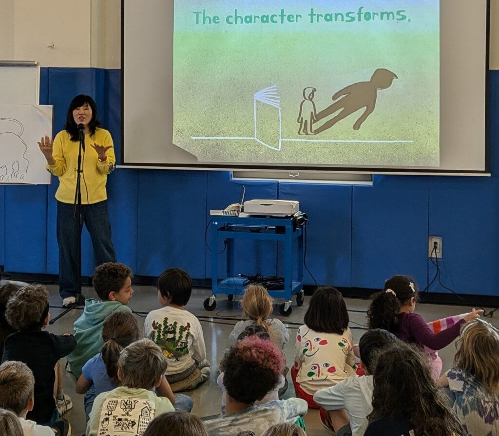 Our 2nd through 5th Graders were treated to a visit from author and illustrator Yangsook Choi. Yangsook took students on a virtual tour of her studio in Seoul, offering a glimpse into her creative sanctuary, including her “thinking chair,” where she where she comes up with her fantastical stories. She demonstrated her passion and talent for drawing by sketching along to classical music “like a conductor guiding an orchestra.” Yangsook also shared personal stories from her childhood, including experiences that inspired her book, The Name Jar. She explained to our students that it’s the difficulties a character faces that help them grow — and that the overcoming of obstacles is also what makes a story interesting. The visit left students feeling inspired, with a deeper understanding of how personal experiences can fuel creativity and how perseverance makes for compelling storytelling.