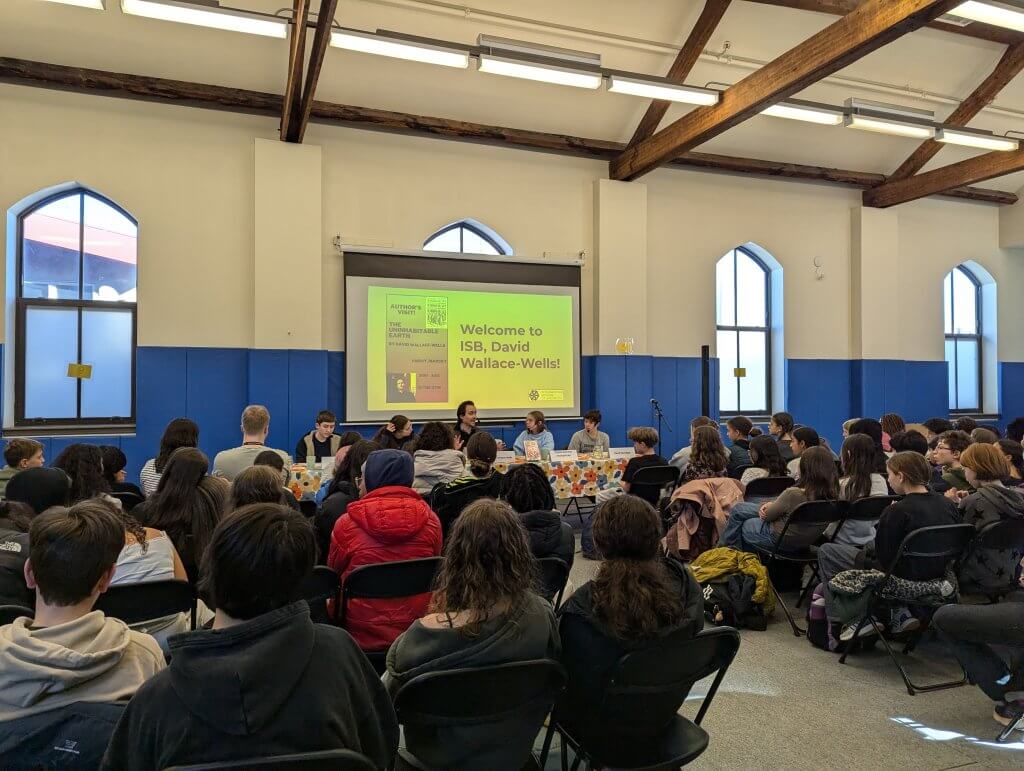 The ISB Library welcomed Climate Journalist David Wallace-Wells for a special visit with Middle Schoolers to talk about his book The Uninhabitable Earth (Adapted for Young Adults): Life After Warming. Our students found hope in coming together and having this conversation with David, who reminded them that, if they put their minds to it, they can change the course of history. And, the proof was in the pudding — this informative panel-type discussion was brilliantly moderated by our 8th Grade student changemakers!