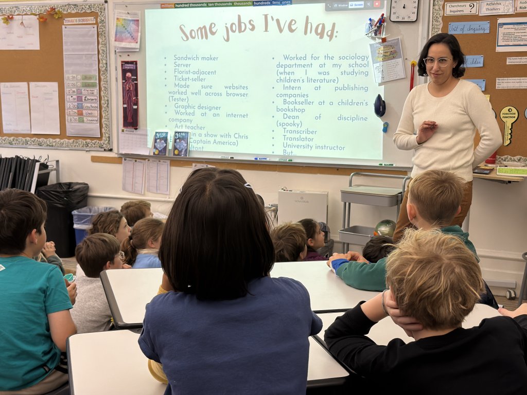 Author, translator, and university professor, Luisana Duarte Armendáriz visited our 4th Graders to talk about her book Julieta and the Diamond Enigma. Before telling some of Julieta’s story, she spoke about her bilingual dog — who responds to commands in both English and Spanish! — and the many jobs she’s had besides being author of children’s books including ticket seller, sandwich maker, graphic designer, and even the “spooky” occupation of “Dean of Discipline!” Then she talked about Julieta and how her character was inspired by the troublemaking that she got into when she was a kid. Luisana also shared about her writing process, which is very unique. Even though she grew up speaking Spanish, she said she has lived her literary life mostly in English as an avid reader of books in that language. So, when she sits down to write fiction she writes in English. In the case of Julieta and the Diamond Enigma, she then translated the book herself into Spanish. Our 4th Graders were really intrigued by the Julieta’s mystery story, and were super excited to get an exclusive first-ever preview of Julieta’s next adventure, Julieta and the Cryptic Rose coming in the fall of 2026!