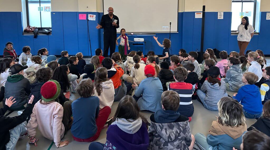Brooklyn-based interdisciplinary artist, author and illustrator of children’s books, and playwright Christopher Meyers visited ISB and met with our Lower Schoolers in their morning assembly. He shared about his book, My Pen, which tells the truth about how pretty much everything starts with a pen and how a kid with a pen can make the wildest imaginings come to life. Christopher also talked about the two main components of a good story: a character, and a problem. Our students then came up with a bunch of ideas for interesting narratives including “a bunny in desperate need of ballet flats!” Christopher left our Lower Schoolers feeling empowered and confident that, pen in hand, they could write their own books, and — apropos of nothing! — he pointed out to them that “in the beginning of every book is the address of a publisher where you can send your work!”
